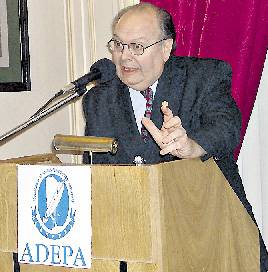 Barcia habló en la comida mensual de la Asociación de Entidades Periodísticas Argentinas (ADEPA), en el Salón Pur Sang, avenida Quintana 191. Lo presentó el presidente de la institución, Gustavo Vittori, quien señaló que la libertad de prensa requiere una sociedad capaz de comprender los mensajes y, también, periodistas con conocimientos.