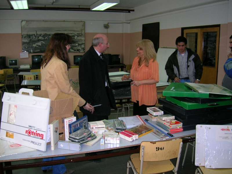 El material entregado fue gestionado a través de una compensación de deuda con una librería de la ciudad, consistiendo lo donado a la CPET en adaptadores de compás; atriles de dibujo; atriles para mesa; bandejas laterales para mesa de dibujo; cartuchos de tinta; compases simples, técnicos y con prolongadores; equipos college set rotring, rotring isograph, rotring variant, standler mástil, y pilot sec; gomas de dibujo técnico; juegos de pistoletes; lápices negros; letrografos; mesa de dibujo; miniplantillas de dibujo; plantillas de dibujo; porta punteras; punteras completas; reglas con número y signos; reglas con números y letras; tableros de dibujo; tinta de dibujo; etc.