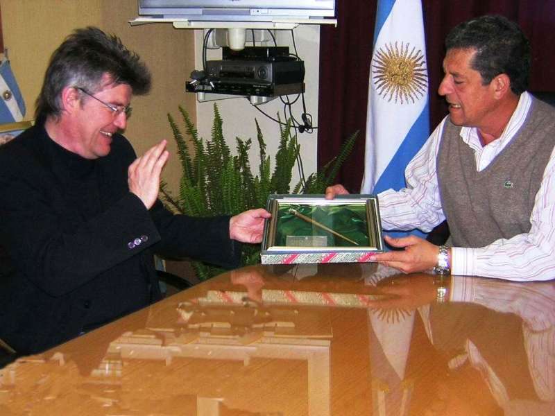 Ayer por la mañana el intendente Jorge Garramuño recibió la visita del director de orquesta suizo, Claude Villaret, oportunidad en la que le obsequió una batuta de madera de lenga en reconocimiento por su participación en la tercera edición del Festival Internacional de Ushuaia.