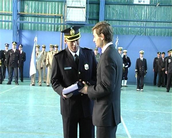 Luego de la entrada de las banderas de ceremonia, acompañadas por la música ejecutada por la Banda del Área Naval Austral, se entonó el Himno Nacional. El jefe de la policía brindó algunas palabras a los presentes y se procedió a la entrega de premios, medallas y diplomas.