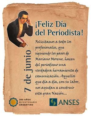Quiero enviarles un saludo muy especial por celebrarse este lunes el Día del Periodista, para todos aquellos que día a día colaboran desinteresadamente con la tarea de difundir el significado de la Seguridad Social a todos ciudadanos. «Feliz Día del Periodista» Juan Carlos Arcando Jefe UDAI Ushuaia (ANSES)