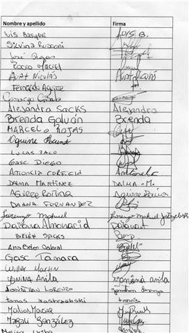(adjuntamos al mail hojas donde firmaron parte de los alumnos del colegio)