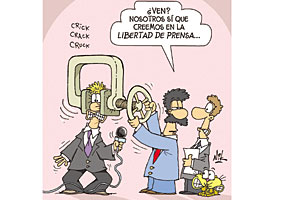 Cristian Dzwonik, más conocido como Nik, es un experto en ese arte. Las viñetas con las que cierra la edición de NOTICIAS son verdaderas narraciones de tono político cargadas de ironía en las que satiriza a gobernantes y personajes de una sociedad siempre al borde del precipicio. Esa virtud le acaba de valer un nuevo reconocimiento de la Sociedad Interamericana de Prensa (SIP), que le otorgó el Premio a la excelencia periodística 2010 en la categoría Caricatura por una serie de viñetas sobre el ataque del gobierno argentino a la libertad de prensa, entre las que se encuentra la que ilustra esta página, publicado en NOTICIAS del 19 de septiembre pasado.