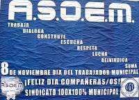 En el Día de los Trabajadores Municipales, la Comisión Directiva de la Asociación Sindical de Obreros y Empleados Municipales A.S.O.E.M., hace llegar un abrazo fraternal a todos los Compañeros en nuestro día 8 de Noviembre, día de Unidad, Solidaridad y Organización de los Trabajadores Municipales.