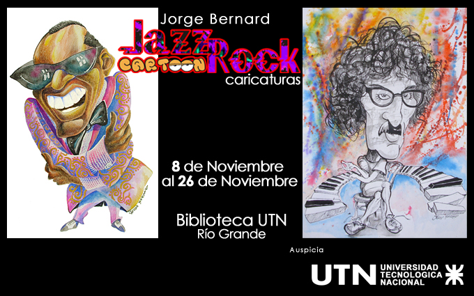 Vier 5 12:30 hs.-Te invito a la muestra Jazz & Rock Cartoon, la cual podrás visitar a partir del lunes 08 de Noviembre a las 19 Hs, hasta el 26 de Noviembre, en la Biblioteca de la UTN. La exposición trata de caricaturas de grandes personalidades de la música Jazz y Rock del mundo y Argentina, entre ellas Charly Gracía, Luis Alberto Spinetta, León Gieco, Bjork, Peter Gabriel, Louis Armstrong, Miles Davis, Mike Stern, Green Day, Ray Charles, David Bowie y muchos más. Obras realizadas en variadas técnicas: tinta, acuarela, grafito, acrílico y lápiz. Espero puedas verla. Jorge Bernard