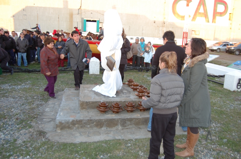 Acto seguido, se produjo uno de los momentos más emotivos, donde el Presidente de la fundación Hain, acompañado por su esposa e hijas, su hermana Karina Vargas, Manuel Grini, presidente de la Junta Vecinal del barrio CAP y Ariela Saldivia, única botera de la ciudad, procedieron a descubrir la estatua ubicada en el centro de la plazoleta en alusión al “Botero”, esa persona tan reconocida en toda la ciudad, donde todo el público respondió con un eufórico aplauso.