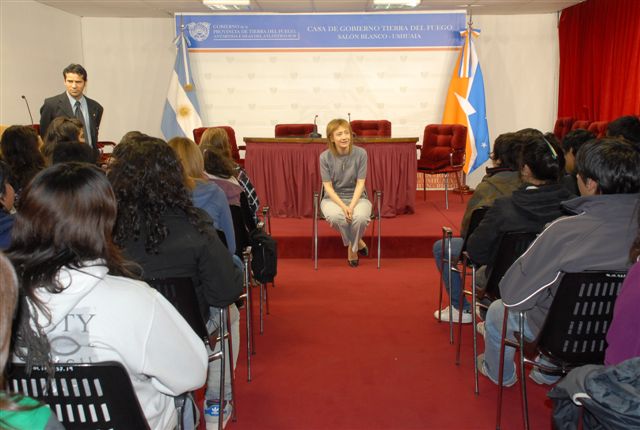 Los alumnos también consultaron a la Gobernadora acerca de los beneficios que el convenio firmado con la empresa de capitales chinos Tierra del Fuego Energía y Química traerá a la Provincia.