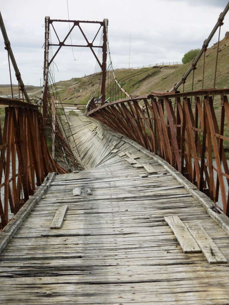 Sab 8 20:19 hs.-Construido por la empresa Frigorífica Argentina de Tierra del Fuego.S.A. y habilitado en 1920, el viejo puente colgante sobre el Rio Grande, fue declarado Patrimonio Histórico de la ciudad, para facilitar el transito entre ambas márgenes y el traslado de hacienda hacia el ex frigorífico CAP. Sus componentes fueron traídos desde Estados Unidos tiene 110 metros de extensión y la construcción estuvo a cargo del Ingeniero Gloecke. Hoy este símbolo del desarrollo está caído semisumergido en el Rio Grande producto de la desidia como una muestra mas de que nada importa.