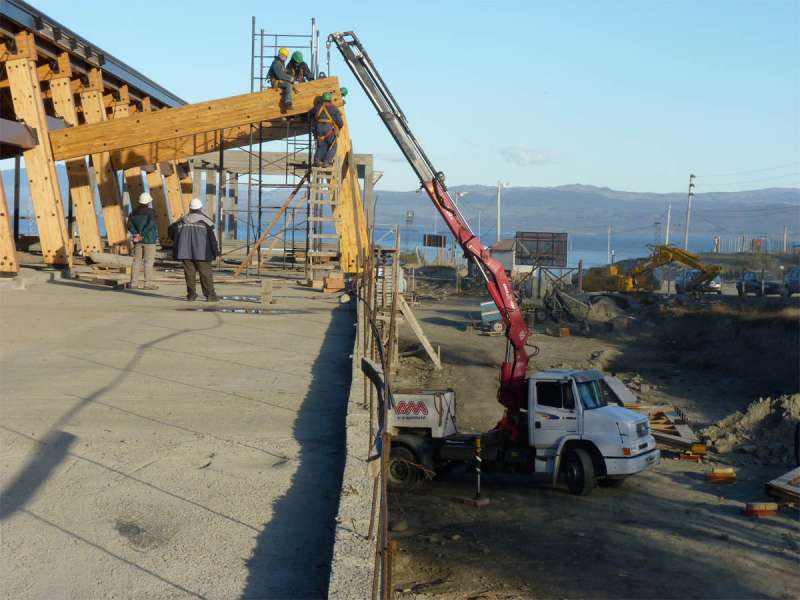 Sobre el tipo de materiales empleados dijo que “allí está previsto colocar madera laminada, el material arribó hace quince días a la ciudad, se han preparado todos los anclajes y herrajes y se comenzó a montar para terminar la parte estructural del edificio”.