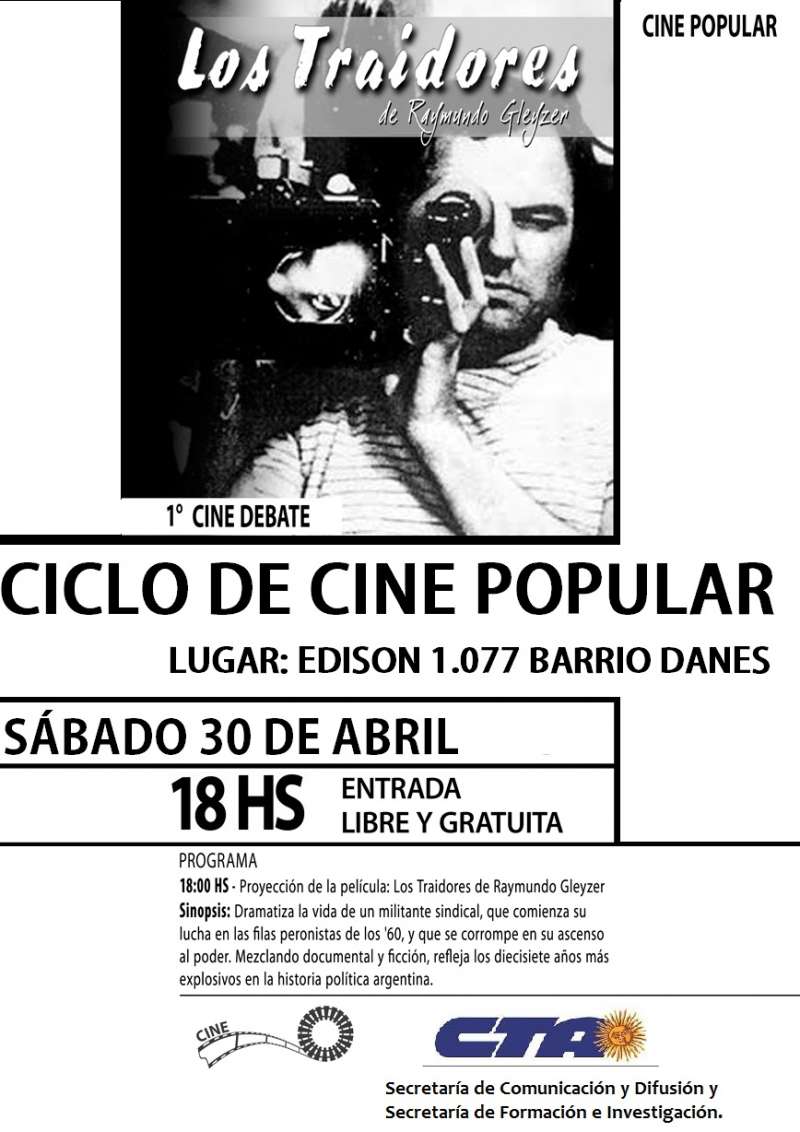 La CTA organiza el primer ciclo de cine debate, el que se llevará a cabo en Calle Edison 1077 del Barrio Danes. La primera proyección será el sabado 30 de Abril con el film «Los Traidores». La entrada es libre y gratuita.