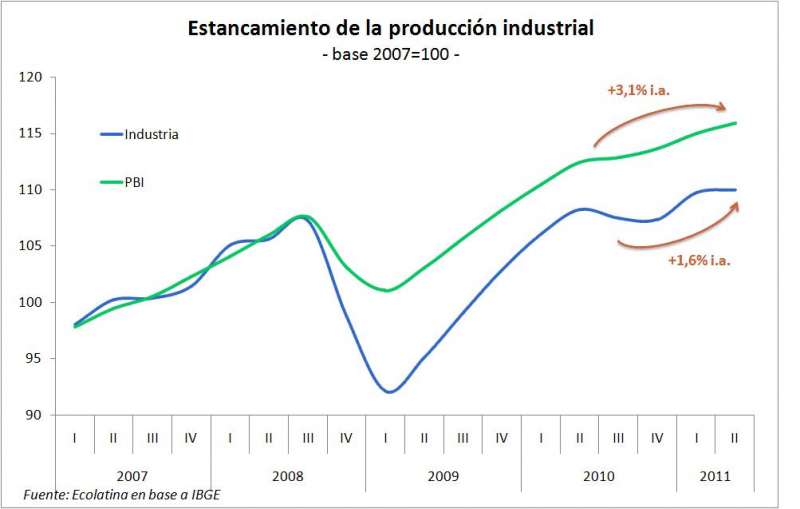 Como comentamos en diversas oportunidades, la estrategia Brasileña de subir la tasa de interés de referencia para contener la inflación ha profundizado la sobrevaluación cambiaria. Los síntomas son evidentes: rápido crecimiento del consumo, estancamiento de la industria y una creciente primarización de las exportaciones brasileñas.