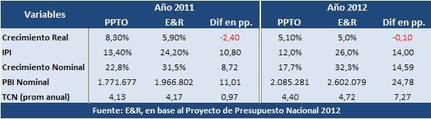Fuente: E&R, en base a datos del MECON y Proyecto de Presupuesto 2012