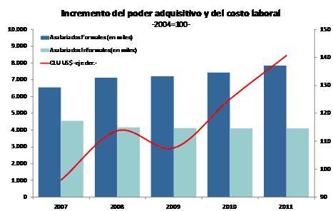 Si bien, junto con otros factores, este avance del poder adquisitivo de los trabajadores posibilitó un sostenido aumento del consumo, también generó una fuerte suba del costo laboral unitario, hecho que preocupa a las empresas del sector transable cuyos productos pierden competitividad frente a los externos.
