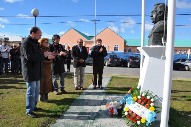 Sab 31 21:20 hs.-Este sábado al mediodía se realizó un sentido homenaje al ex presidente Raúl Alfonsín en el busto que lo recuerda en el boulevard frente a la Escuela Provincial Nº 2, manifestación de la que participó el intendente de la ciudad, profesor Gustavo Melella. El acto fue organizado por el Comité Local de la Unión Cívica Radical y contó con la presencia de las autoridades del Comité Provincia encabezadas por su presidente, legislador Pablo Blanco, su par de bancada, legislador Juan Felipe Rodríguez, el presidente del Comité Local, Roque Fernández, de la Juventud Radical provincial y local y público en general.