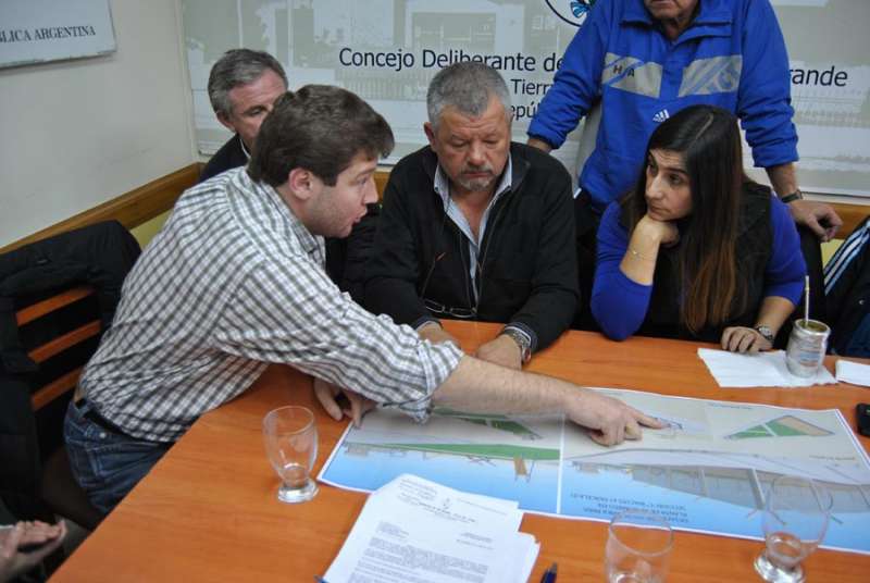 Lun 28 20:56 hs.-Con presencia del intendente Gustavo Melella, la totalidad de los ediles, y vecinos se mantuvo una reunión en el Concejo Deliberante para avanzar en la continuación de la Colectora Cloacal Sarmiento, una de las obras que prestará servicios a gran parte de la ciudad, incluido el Parque Industrial. Del encuentro tomó parte también el subsecretario de Obras y Servicios Públicos, Julio Escobar.
