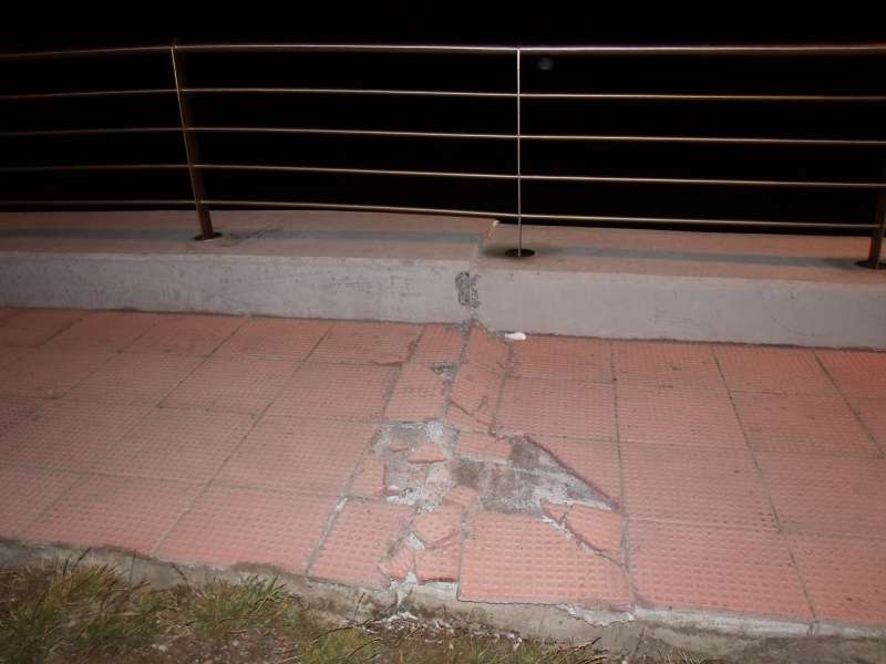 Mier 23 23:18 hs.-La obra mas emblemática de la gestión del ex intendente Jorge Martín, se partió en una extencion de 50 mts frente a la Plaza del Delfín. Un llamado alertó a este medio que se hizo presente en el lugar y pudo observar que a la estructura de hormigón cedió al oleaje que la socavó y produjo un deslizamiento de unos 5 centímetros como se puede ver en las fotografías.