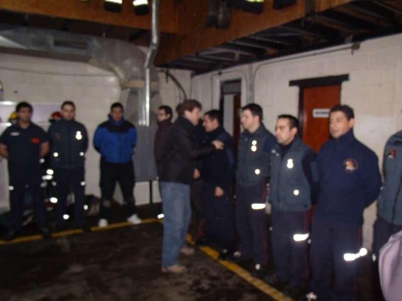 Acompañado por el comandante de Bomberos Walter Low, y el Presidente de la Asociación de Bomberos Voluntarios Pascual Lombardo el jefe comunal hizo un publico reconocimiento a todo el personal de bomberos por la tarea desarrollada en el incendio del día lunes en el parque industrial y en especial a Daniel Veron el bombero que cayó electrocutado y luego de dos horas internado volvió al incendio.
