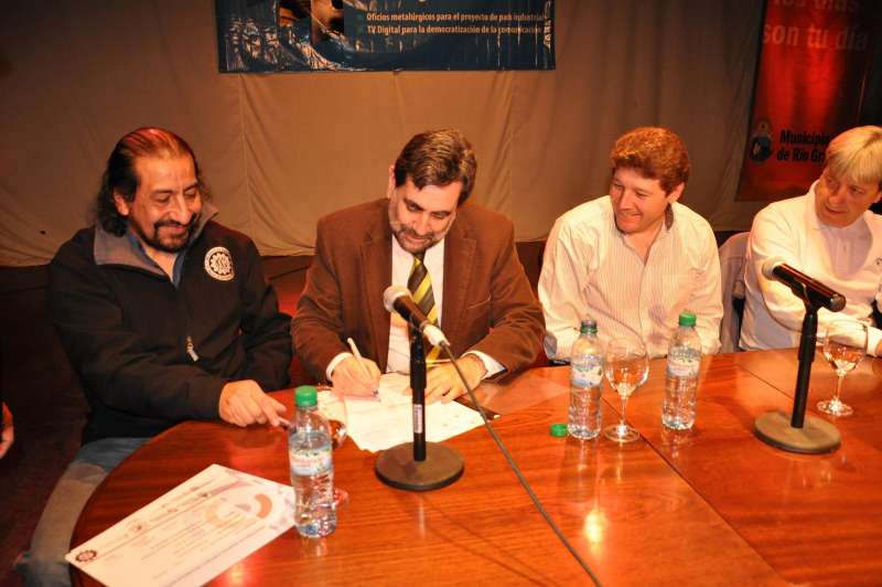 El acta respectiva fue rubricada por el Intendente Municipal, profesor Gustavo Melella y el Secretario General de la UOM Seccional Río Grande, Oscar Martínez, tras lo cual hubo un estruendoso reconocimiento por parte de los trabajadores metalúrgicos por la gestión llevada a cabo por el Intendente Melella.
