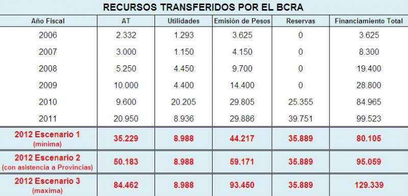 Las contribuciones previsionales (aportes personales y contribuciones patronales)no alcanzan a cubrir el pago de haberes previsionales. El total de haberes previsionales a pagar durante el 2012 ascendería a $205.500 millones, que serían financiados sólo en un 84.2% por las contribuciones previsionales. Sin embargo, hay que mencionar que la ANSES paga más que jubilaciones y pensiones. Paga también Asignaciones Familiares por $14.000 millones anuales.