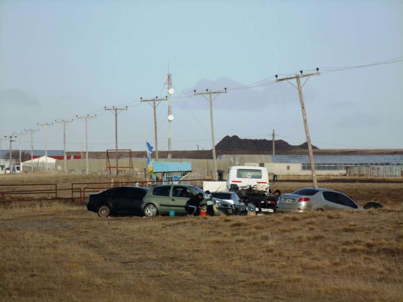 La baja temperatura que se registraba en el lugar no fue impedimento para que hasta camiones fueran lavados con el agua del chorrillo que se encuentra a unos 12 kilómetros de la ciudad y se encuentra dentro de un predio declarado patrimonio Histórico nacional.