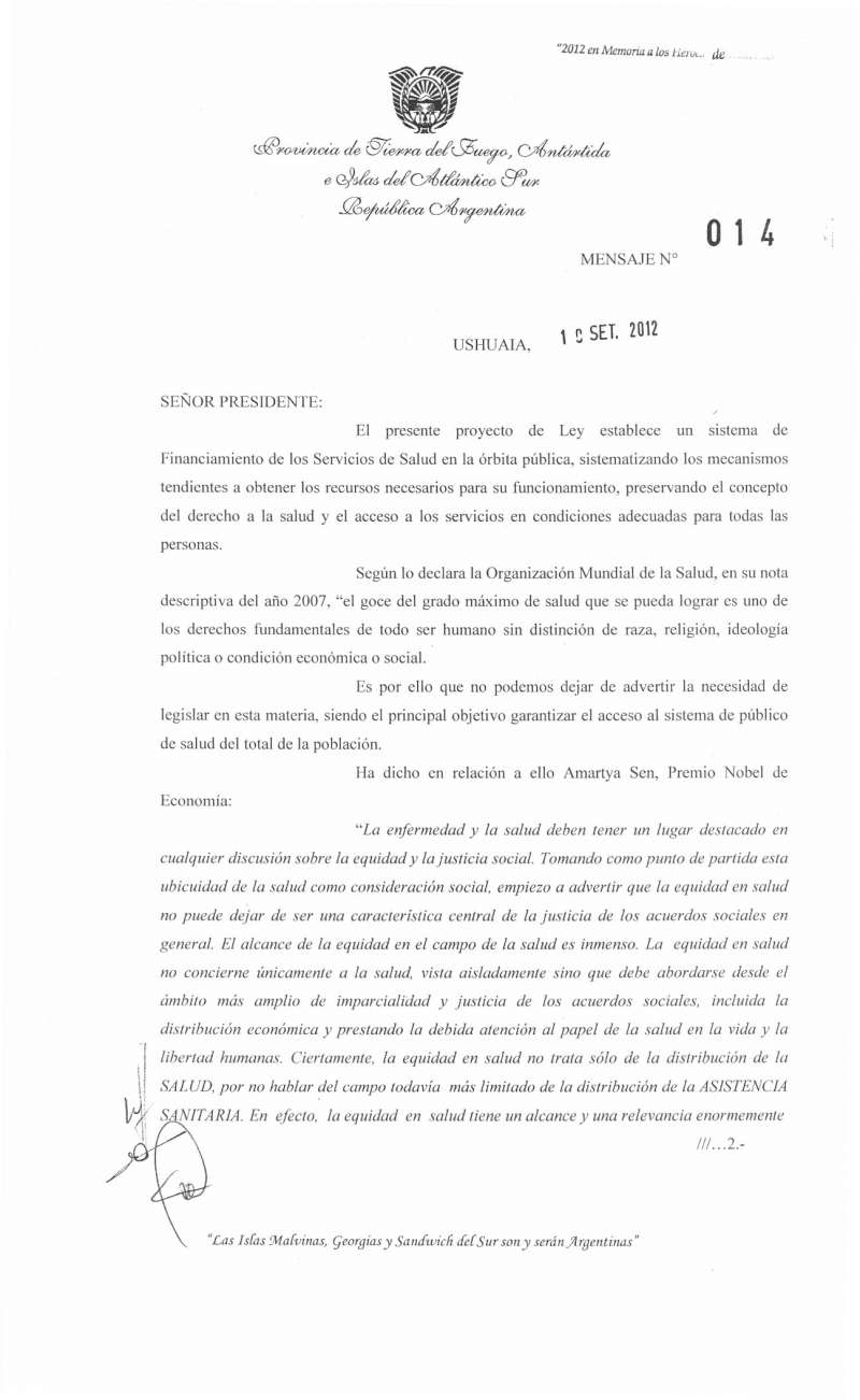USHUAIA, 19 de septiembre 23:43 hs.-.- La Gobernadora Fabiana Ríos confirmó este miércoles que el Gobierno provincial presentó, al Poder Legislativo, un proyecto de Ley de Financiamiento del Sistema Público de Salud, destacando entre sus puntos la garantía del no pago directo de las prestaciones en los Hospitales Públicos.