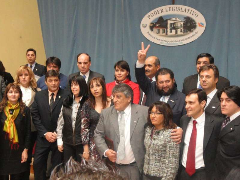 La mandataria no aparece en la fotografía donde se puede ver al intendente del flamante municipio, y los 14 legisladores que llevaron a cabo este hecho histórico para la provincia.