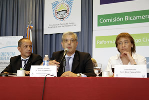 La Comisión Bicameral por la Reforma, Actualización y Unificación de los Códigos Civil y Comercial hizo pie en Ushuaia, Tierra del Fuego, donde llevó a cabo una nueva audiencia pública que inauguró este viernes el presidente de la Cámara baja, Julián Domínguez, junto a la gobernadora local, Fabiana Ríos, quien distinguió a los legisladores como Huéspedes de Honor.