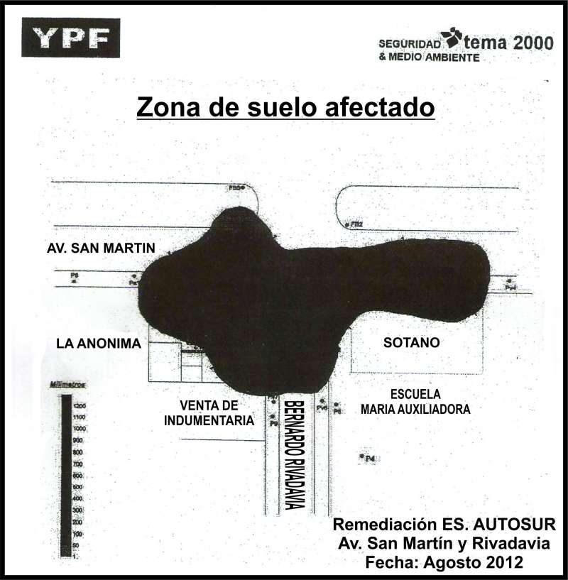 Sab 10/11/12 23:01 hs.-El grupo de padres del comité de crisis del Colegio María Auxiliadora, días atrás recibieron por parte de autoridades competentes, la imagen que acompaña esta nota la cual refleja el área de suelo afectado en la zona aledaña a la Estación de Servicio AUTOSUR ubicada en Av. San Martín y Rivadavia.