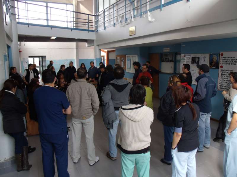 Lun 12/11/12 13:53 hs.-Los trabajadores de la salud del hospital regional Rio Grande continúan con sus reclamos en respuesta a la solicitud de equiparacion de títulos, 500 pesos al básico y aumento del recurso humano. Mientras y desmintiendo una vez mas al gobierno provincial debemos decir que el laboratorio no se pueden hacer estudios de diabetes por falta de equipamiento. Tampoco se entregan turnos en laboratorio.