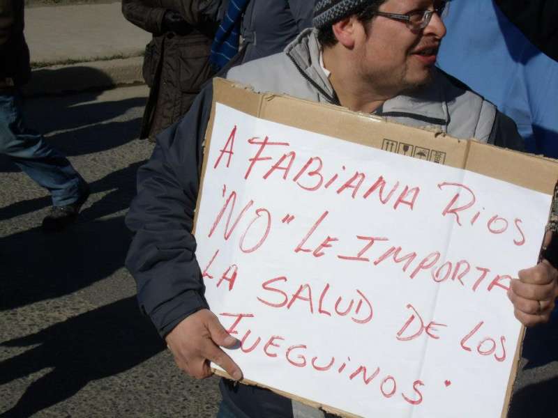 Hoy los trabajadores, después de realizar una asamblea por la ciudad, pasaron frente a la legislatura y arrojaron huevos al edificio y luego se dirigieron a la municipalidad donde reclamaron la presencia del Intendente Gustavo Melella, pero finalmente fueron atendidos por la coordinadora de gabinete, Silvia Rosso.