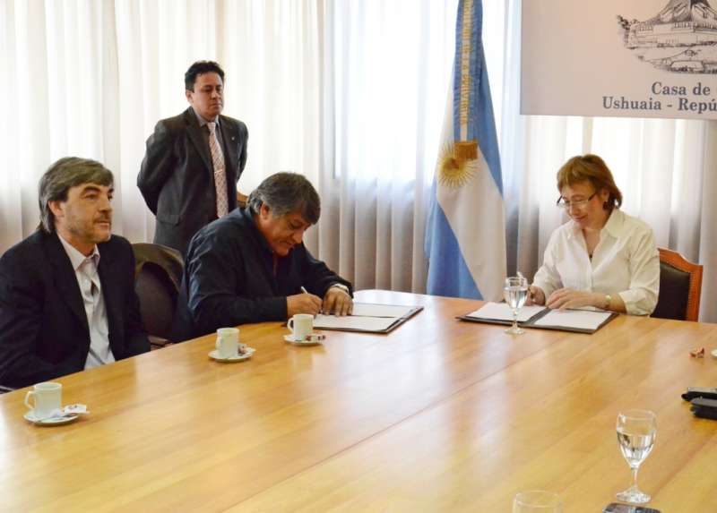 En la firma del convenio estuvieron presentes la ministra de Infraestructura, Obras y Servicios Públicos, Gabriela Muñiz Siccardi; el ministro de Economía, Christian Ruiz, y funcionarios de la Municipalidad de Tolhuin.