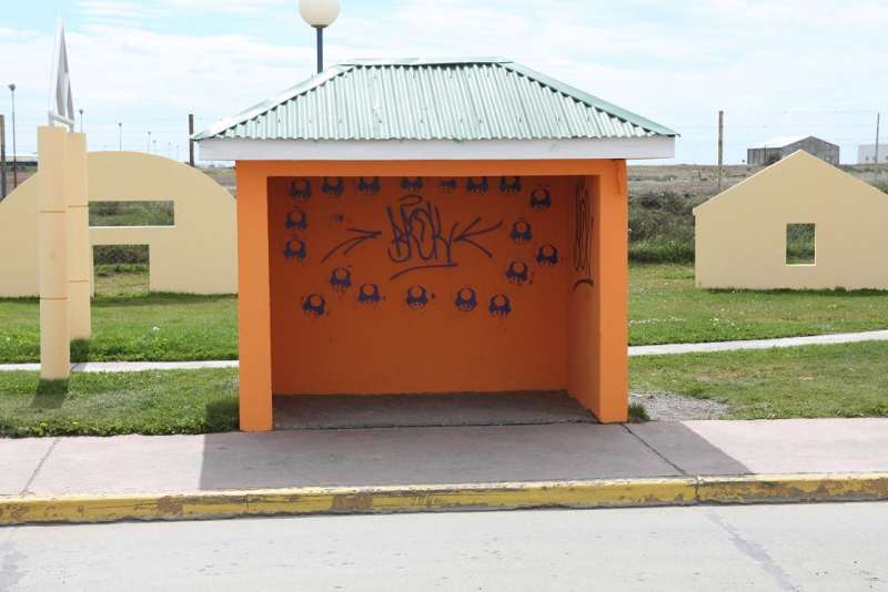Mart 15/01/13 14:09 hs.-Una de las garitas de colectivos en la avenida San Martín que durante el fin de semana fuera pintada por el personal municipal, amaneció pintarrajeada de graffiti este lunes, presumiblemente por jóvenes. Desde la Secretaría de Obras y Servicios Públicos se pide a los padres que exhorten a sus hijos a cuidar los espacios públicos porque son de todos los vecinos.