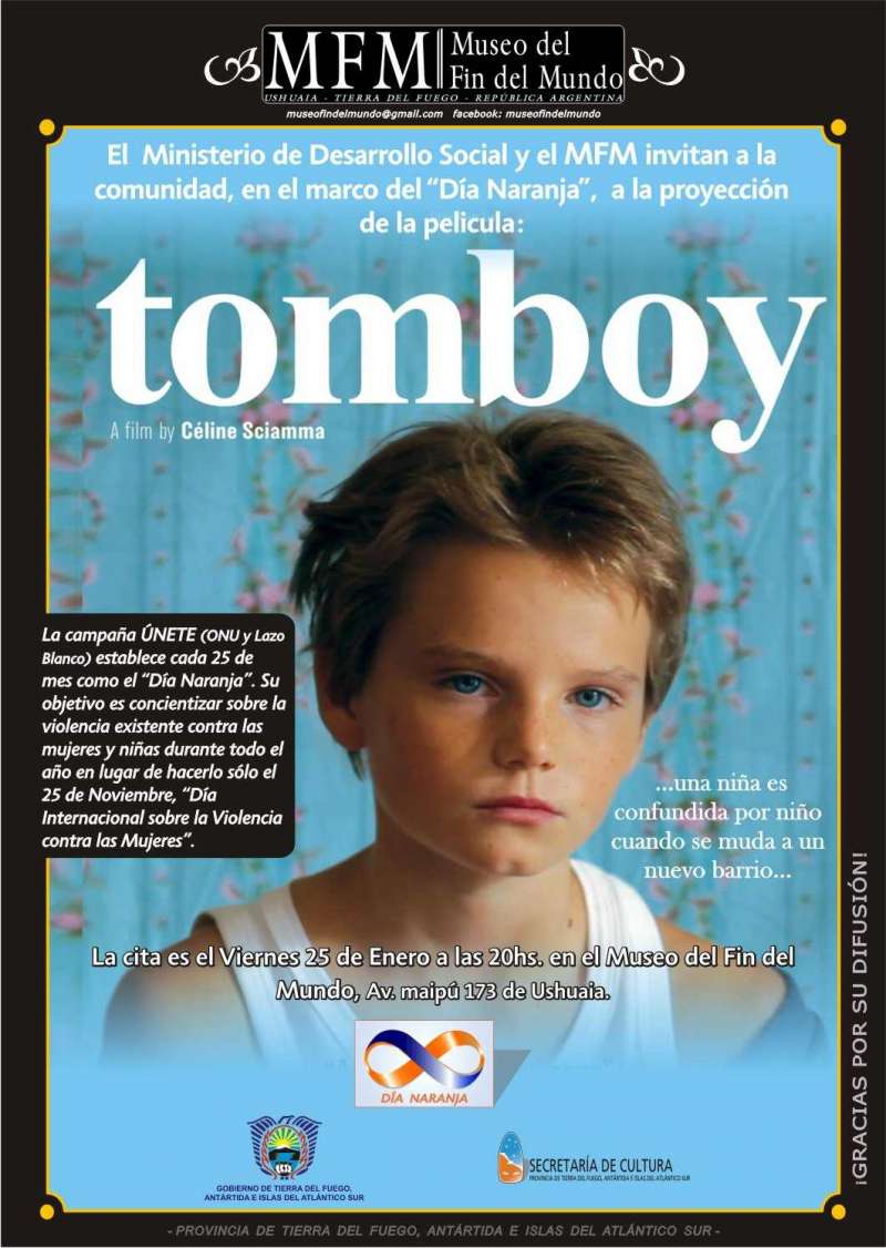El próximo viernes 25 de enero se proyectará la película francesa “TOMBOY” en las ciudades de Río Grande y Ushuaia. En Río Grande, la proyección será a las 18 en el Auditorio del Museo Fueguino de Arte, con entrada libre y gratuita, en tanto que en Ushuaia la película de podrá ver en el Museo del Fin del Mundo a las 20 horas.