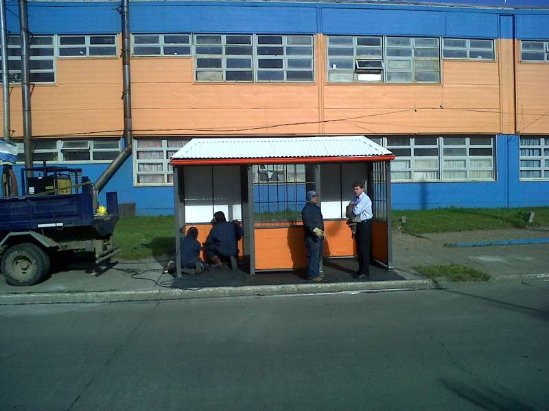Mart 22/01/13 14:06 hs.-Desde la 6 de la mañana de este martes, personal de la Secretaría de Obras y Servicios Públicos comenzó con la colocación de la primera de las dos garitas íntegramente construidas por personal de Servicios Públicos en los talleres que el Municipio de Río Grande posee en el Parque Industrial.
