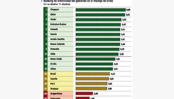 La percepción de los empresarios dista del impacto de la crisis en los distintos países del mundo. Singapur, Qatar, Omán, Emiratos Árabes y Canadá encabezaron el ranking. Con la excepción del tigre asiático y Canadá, se trata de países con una fuerte desigualdad de clases y regímenes no democráticos.