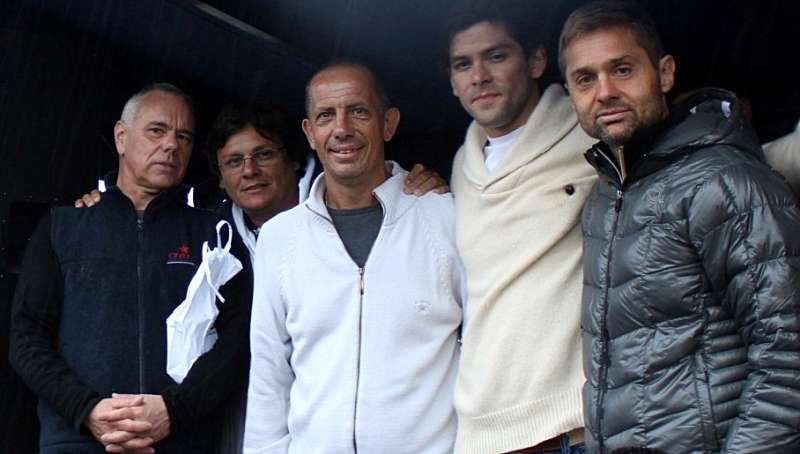 Mart 12/02/13 21:39 hs.-Federico Sciurano felicitó a Matías Ola, de 28 años, y Cristian Vergara, de 54, que completaron a nado y sin traje los tres kilómetros de ida y vuelta entre Punta McKingley (Chile) y Cabo Peña (Argentina).