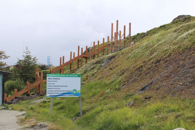 Mierc 27/02/13 18:19 hs.-La Municipalidad de Ushuaia lleva adelante la construcción de una escalera peatonal en inmediaciones de la intersección de las avenidas Héroes de Malvinas y Alem.