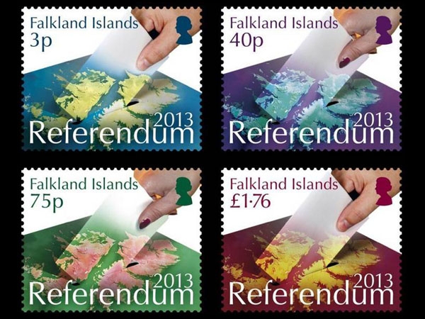 Las estampillas debutaron este fin de semana y, según la Oficina de Filatelia del archipiélago, buscan convertirse en un recuerdo de la votación en la que los habitantes de las islas votarán a favor –o no- de ser un territorio de ultramar británico, en la que, sin lugar a dudas, se espera un abrumador «sí».