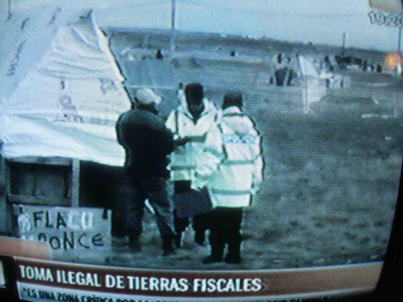Hay funcionarios municipales en el lugar, mientras unos 150 policías tratar de rodear a los usurpadores que son amenazados con palas, palos, y fierros o elementos contundentes de todo tipo.