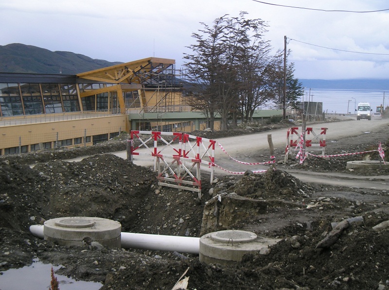 Tras el trabajo de los últimos meses de la Municipalidad de Ushuaia en las obras de tendido de redes de los servicios de agua y cloaca en la urbanización del Valle de Andorra, con un avance cercano al 50%, las tareas se vieron interrumpidas el día de hoy en el tramo de obras correspondientes a los troncales de agua y cloacas, sobre la calle principal de acceso al Valle.