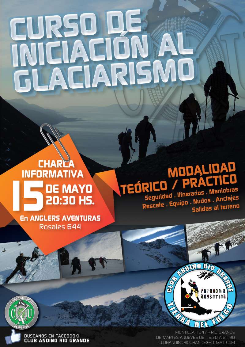 RIO GRANDE 14/05/13 16:31 hs.-.- El Club Andino Río Grande ha programado llevar adelante un Curso de Iniciación al Glaciarismo, el que se dictará en la segunda quincena del mes de mayo del corriente año, razón por la cual ha organizado una Charla Informativa para todos los interesados en participar del mismo.