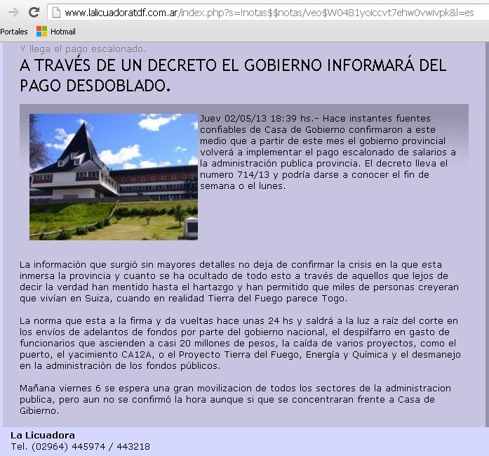 Así y todo no se publico el cronograma de pagos, pero Ravaglia quería cargar las tintas sobre www.lalicuadoratdf.com.ar y solo le faltó decir «La Licuadora miente», cuando hace un año atras en declaraciones a Fm Ritual, el mismo funcionario decia que este portal era uno de los que el leía porque trataba temas nacionales, entre ellos el recorte de coparticipacion.