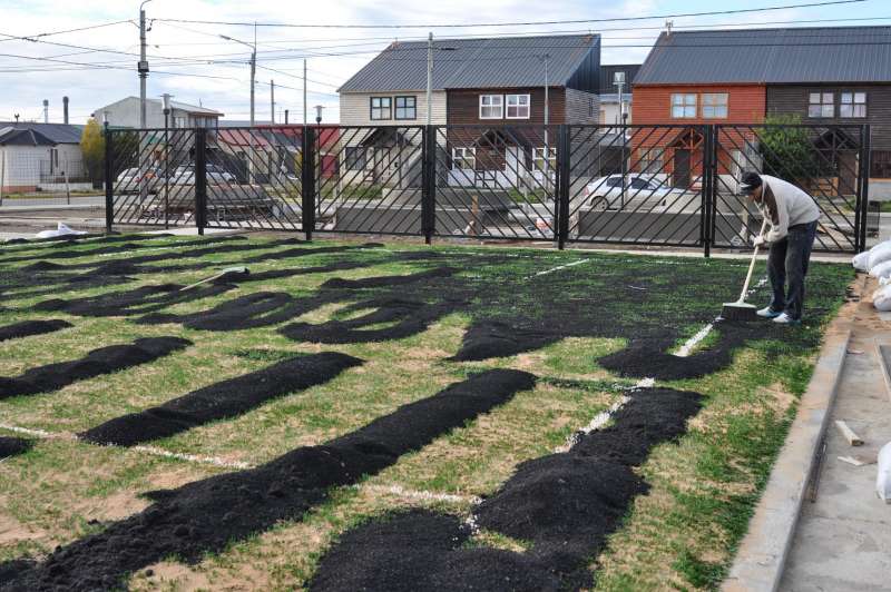 Lun 06/05/13 16:45 hs.-Un gran avance ha tenido en los últimos días la obra de la plaza ‘Madre Teresa de Calcuta’ del barrio CGT donde ya se le ha colocado el césped sintético a la cancha de fútbol y se acabaron los detalles finales de la misma.