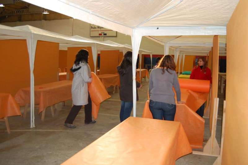 Viern 14/06/13 20:22 hs.-Agentes municipales de distintas áreas están colaborando con sus pares de la Secretaría de la Producción para dejar culminado en la presente jornada los stands para la 14º Edición de ‘El Desafío de Producir’ en el gimnasio ‘Padre Bonuccelli’ del Colegio Don Bosco.