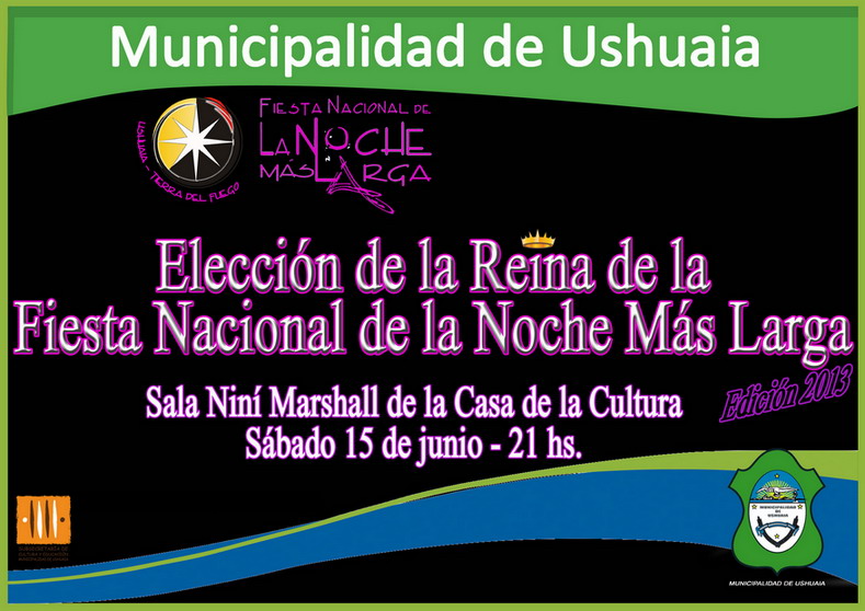 La Municipalidad de Ushuaia realizará por segundo año consecutivo la Elección de la Reina de la Noche Más Larga. El evento tendrá lugar el sábado 15 de mayo a las 21 en la sala “Niní” Marshall de la Casa de la Cultura. La entrada será libre y gratuita.