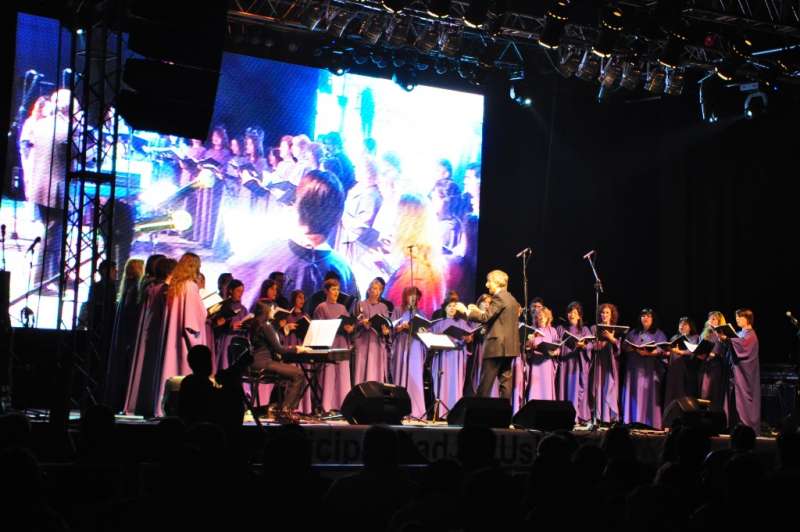 El festejo central, que se llevó a cabo el viernes 21 a las 22 horas, comenzó con la participación del Coro del Fin del Mundo, para luego darle paso a la Banda de Música Municipal a cargo del primer maestro Gerardo Giménez.