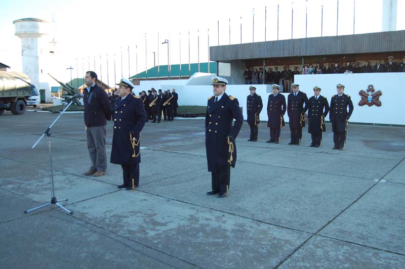 La ceremonia castrense fue encabezada por el comandante de la Fuerza de Infantería de Marina Austral, Capitán de Navío de IM Roberto Daniel Salgado, el secretario de la Producción, licenciado Agustín Tita y el Comandante del BIM Nº 5 Escuela, Capitán de Fragata de IM Leonardo Natán Gómez.