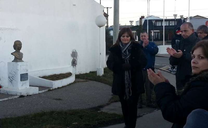 Río Grande 27/07/13 10:41 hs.-La precandidata a Diputada Nacional por el Partido Justicialista , María Angélica Del Estal, estuvo presente en el acto en conmemoración del paso a la inmortalidad de Eva Perón, que se realizó este viernes por la tarde en la plazoleta donde se ubica el busto de Evita, cita sobre Ricardo Rojas.
