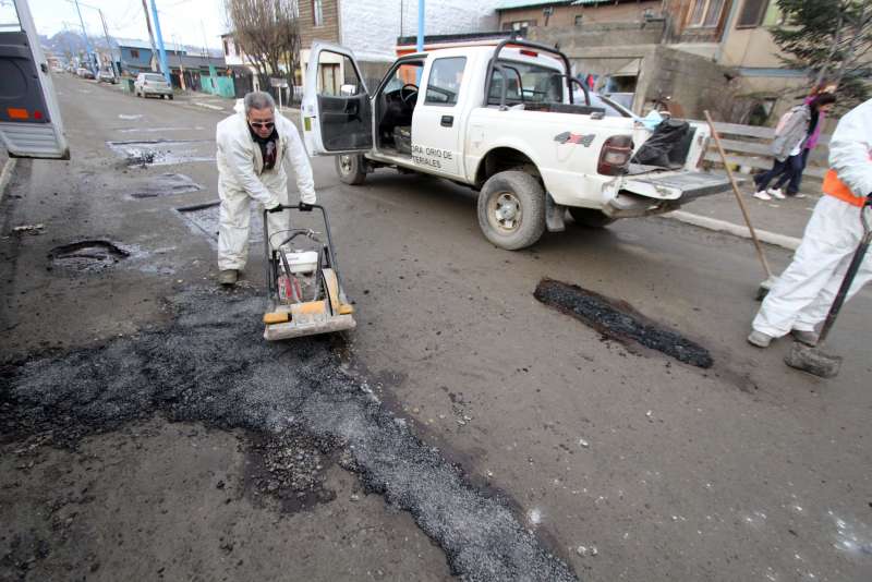 La Municipalidad de Ushuaia a través de las cuadrillas continúa con los trabajos de bacheo en diferentes puntos de la ciudad. Durante la jornada de hoy la labor se realizó en la avenida Magallanes al 2000.