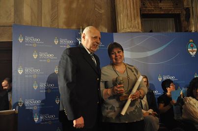 Mart 20/08/13 18:49 hs.-La entrega se realizó el martes, en el salón Azul del Senado de la Nación. Silvia fue postulada para el premio por el senador Jorge Colazo.